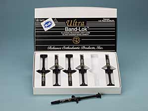 Fluoride releasing cement has two-paste mixing for consistent viscosity every time. Can be used without a curing light or can be immediately cured when light activated for 50 seconds. Band-Lok has a pleasant, non-bitter taste. High compressive and tensile strength. Reliance Ultra Band-Lok (no mix)