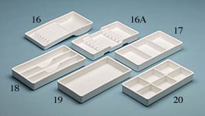 Sturdy, stain resistant plastic inserts for drawers. Available in six different designs. Compatible with most chemical disinfectants. Will fit into standard size drawers for all Dome cabinets. Specify by number designation: 16, 16A, 17, 18, 19 or 20. White, blue. 4" x 7.5" x 1". Cement and Tartar RemoverDome Solution #2